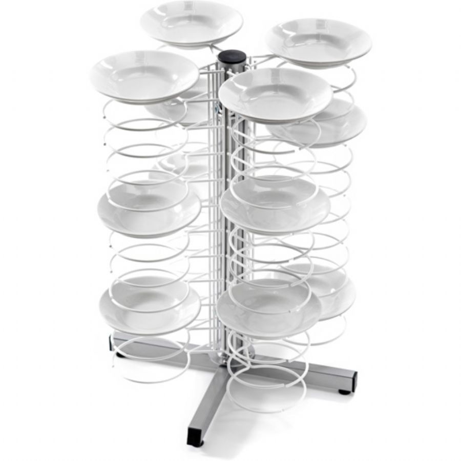 Porte-assiettes colonne inox sur roulettes pour 48 assiettes diamètre 240-310 mm