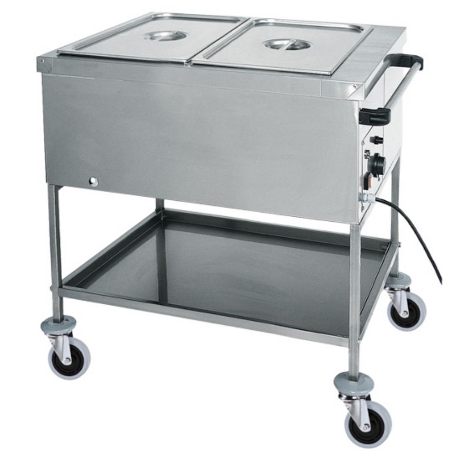 Chariot bain-marie inox avec 2 cuves GN 1/1 - 655x900x910 mm