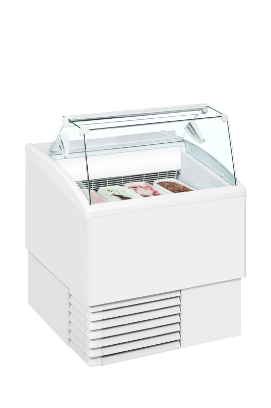 Vitrine à glaces avec couvercle en verre plat température -16/-14°CISA jouit d'une grande renommée dans le secteur de la glacerie pour la conception de vitrines haut de gamme. L'Isetta ST est proposée en 3 formats distincts pour satisfaire la majorité des exigences, permettant d'accueillir entre 4 et 7 parfums de glace. Une structure vitrée plate et un illumination intérieure aident à produire une exposition séduisante et à valoriser au mieux les glaces que vous proposez. La zone de réserve frigorifique est aisément accessible via le portillon arrière (sauf pour le modèle 4ST).