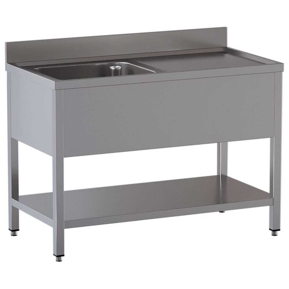 Plonge avec étagère 1 bac à gauche - 1200x700x850mm