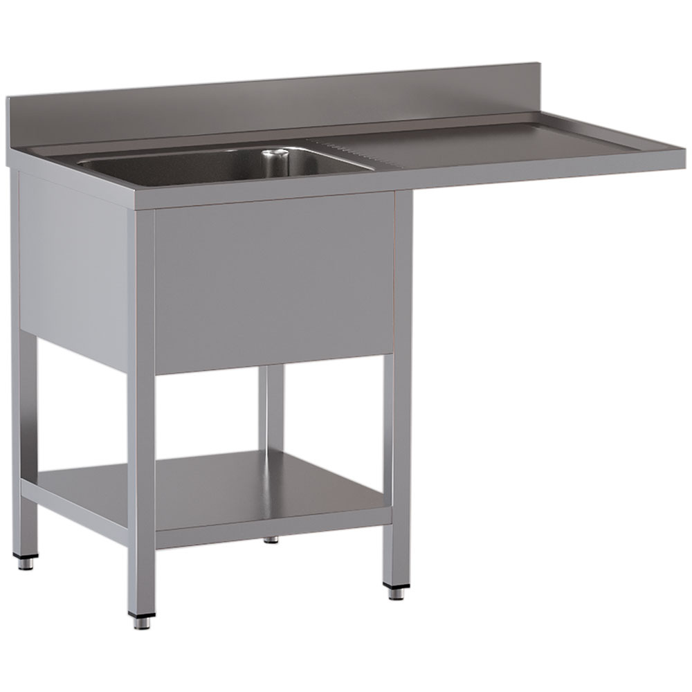 Plonge pro avec étagère et lave vaisselle démontable 1 bac à droite - 1200x700x850mm
