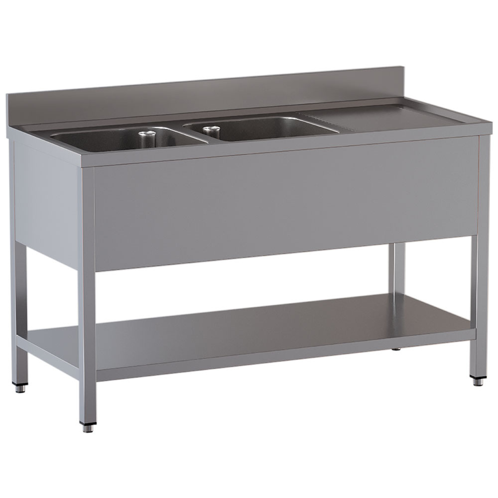 Plonge avec étagère 2 bacs à gauche - 1600x700x850mm