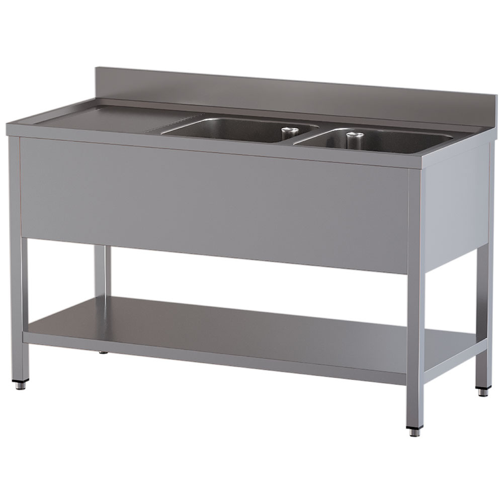 Plonge avec étagère 2 bacs à gauche - 1600x700x850mm