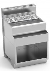Le plan de travail en inox AISI-304 18/10 finition satinée garantit une hygiène irréprochable et une excellente résistance à la corrosion. La structure repose sur des tubes inox soudés de 40x40 mm, assurant robustesse et stabilité même lors d’une utilisation intensive. Le panneau arrière de 80 mm protège vos murs des projections, et son poids de 100 kg lui confère une parfaite solidité pour un usage professionnel quotidien.