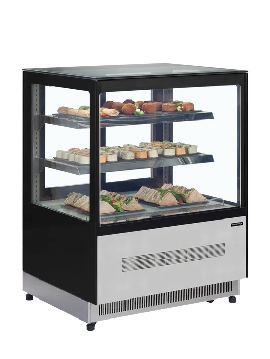 Vitrine comptoir réfrigérée plate noire avec 2 portes vitrées coulissantes - 905x800x1320 mm
