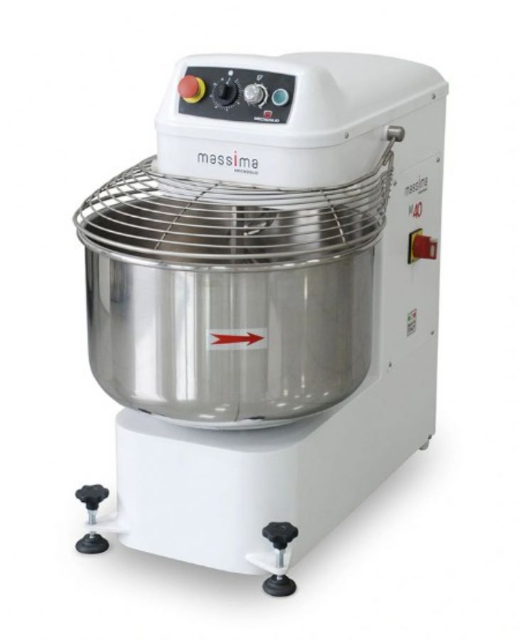Dimensions machine (LxPxH) (mm): 900 x 540 x 874 Alimentation: Monophasé Puissance (kW): 2,2 Type de cuve: Fixe Type de tête: Fixe Variateur de vitesse: Oui Capacité pâte (kg): 40 Capacité cuve (L): 55