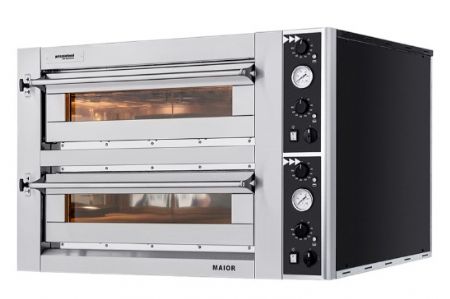 Découvrez le four à pizza professionnel MAIOR 44, une solution fiable et performante adaptée au monde exigeant de la cuisine professionnelle. Ce four électrique à pizza est conçu pour répondre aux besoins des professionnels de la pizza avec ses deux chambres de cuisson permettant de cuire jusqu'à quatre pizzas de 35 cm simultanément. Doté d'une porte vitrée, il assure une visibilité optimale pour surveiller votre cuisson à tout moment.