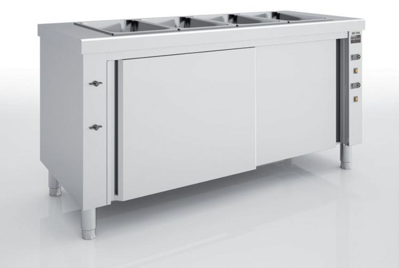 Meuble self enfant inox vitrocéramique 4 GN 1/1 avec réserve chaude - 1600x700x850 mm