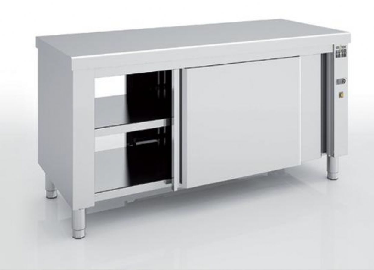Meuble bas inox chauffant ouvert avec porte coulissante - 1800x700x850 mm