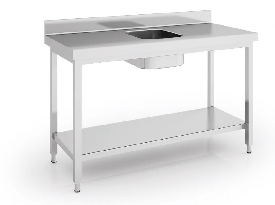 Plonge inox adossée 1 bac à droite avec tablette - 1400x700x850 mm