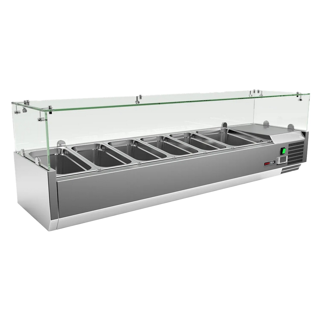 Vitrine à ingrédients positive avec pare-haleine pour 7 bacs GN 1/3 - 1795x396x436 mm