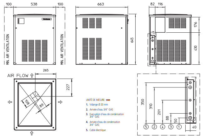 Production standard : 265 kg/24h (21°C air / 10°C eau)