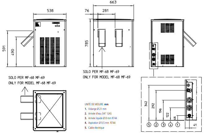 Production de glace : 620 kg/24h (à 32°C air / 21°C eau)