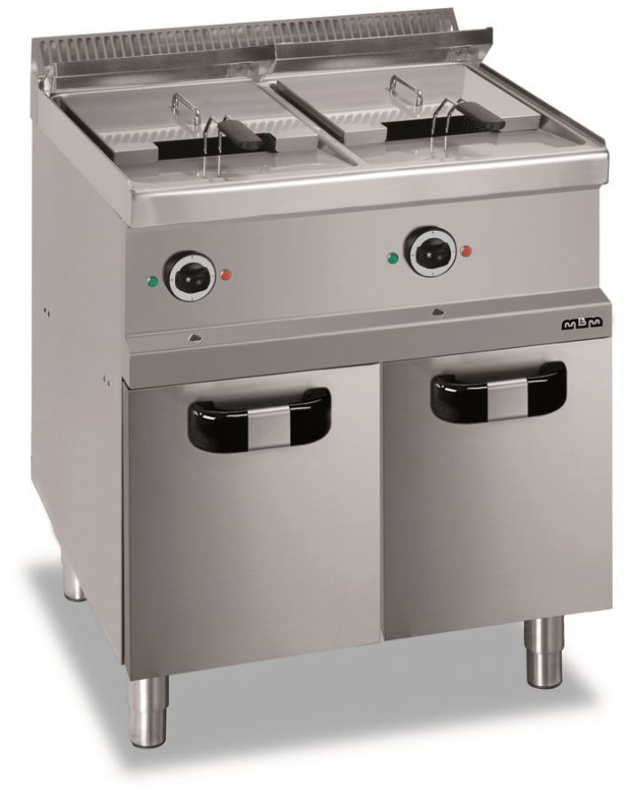 Friteuse triphasé sur coffre 2x15L 2 portes battantes - 800x700x850 mm