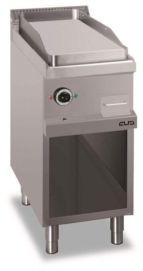 Plaque grill triphasé professionnelle 1 zone lisse sur coffre ouvert - 400x700x850 mm