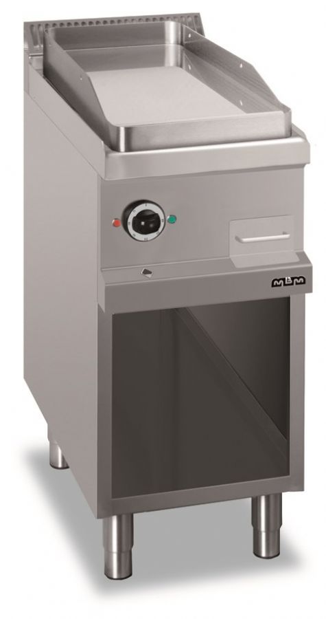 Plaque grill triphasé professionnelle 1 zone lisse sur coffre ouvert - 400x700x850 mm