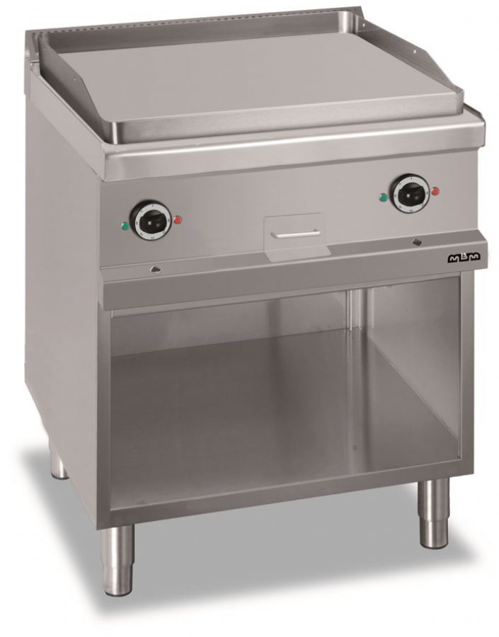 Plaque grill triphasé professionnelle 2 zones lisses sur coffre ouvert - 800x700x850 mm