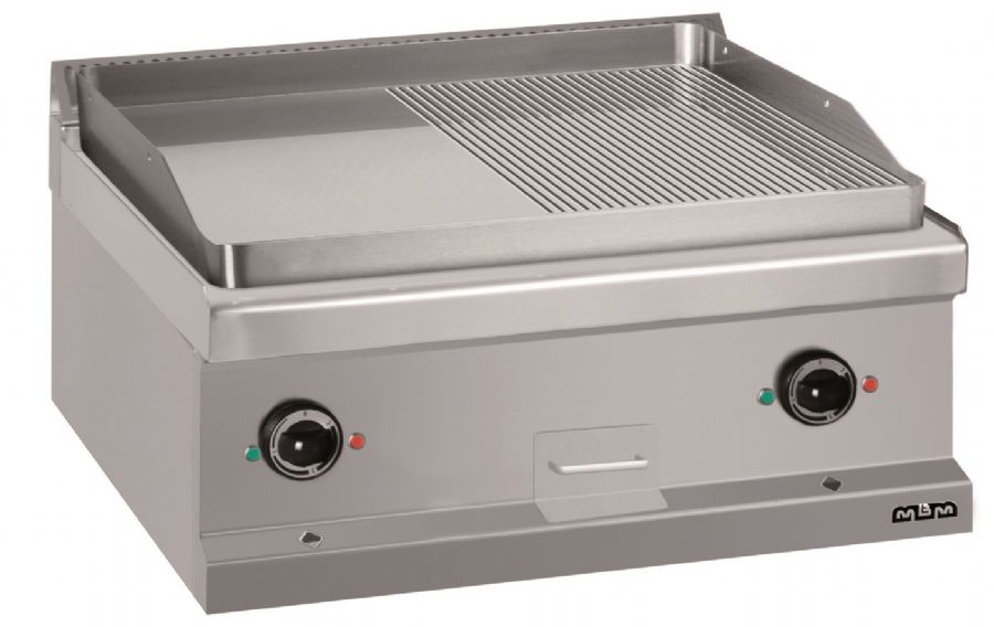 Plaque à snacker électrique à poser surface mi lisse mi rainurée chromée 650x570mm - Profondeur 700mm