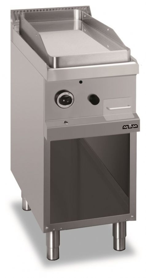 Plaque grill triphasé professionnelle 1 zone lisse sur coffre ouvert - 400x700x850 mm