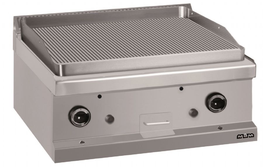 Plaque à snacker gaz sur coffre surface rainurée 650x570mm - Profondeur 700mm