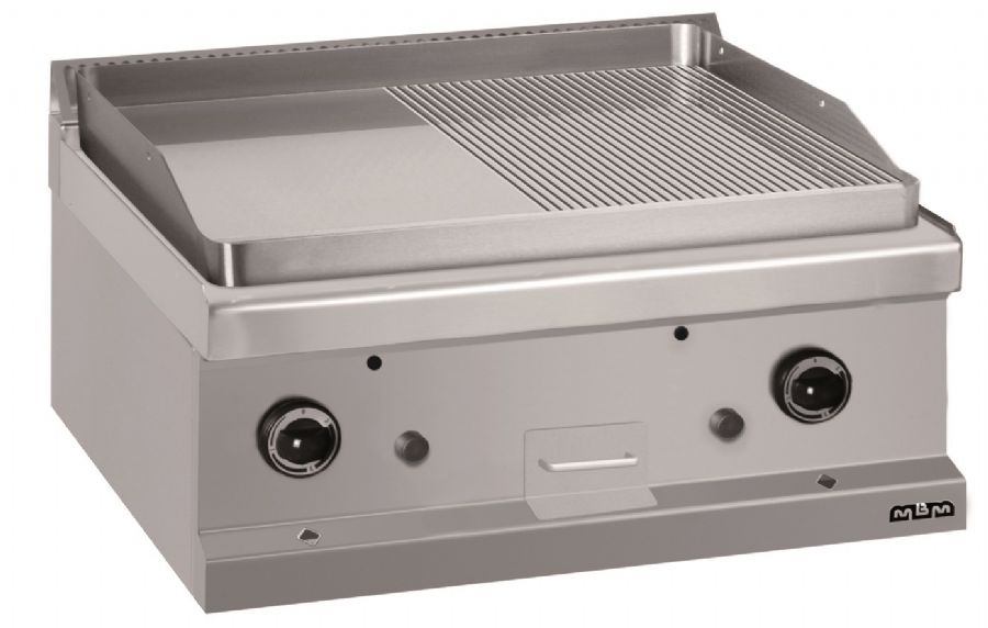 Plaque à snacker gaz à poser plaque mi lisse mi rainurée chromée 650x570mm - Profondeur 700mm