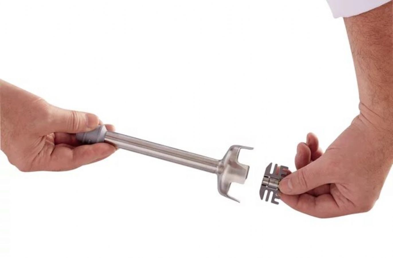Avec des caractéristiques impressionnantes, ce modèle, référence Micromix, dispose d'un couteau démontable en inox, d'un pied démontable et d'un design compact avec des dimensions (LxPxH) de Longueur 430 mm, Ø 61 mm. Son moteur d'une puissance de 220 W assure une préparation homogène, quelle que soit la recette. Conçu pour être monophasé, il s’intègre facilement à toutes les configurations de cuisine professionnelle.