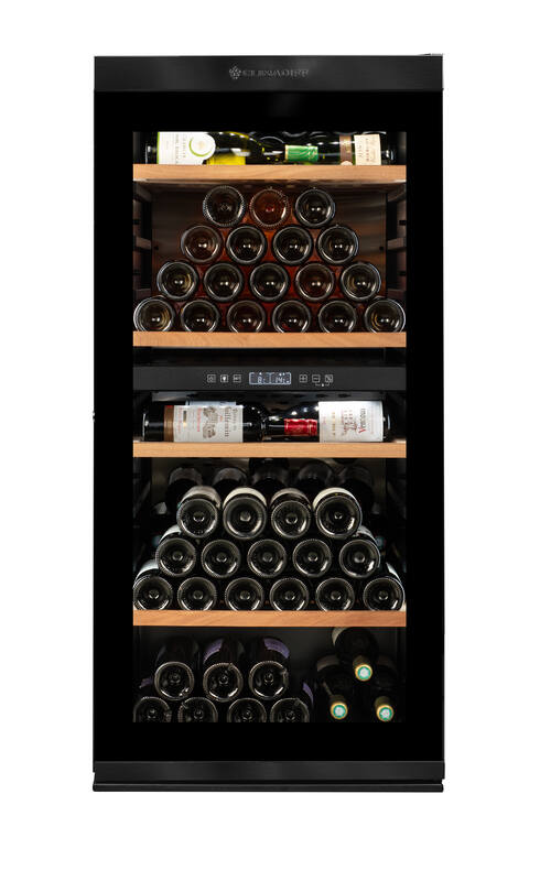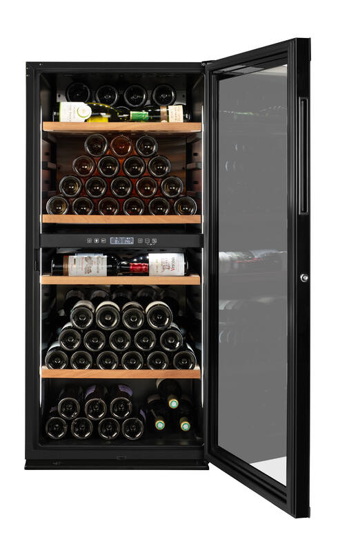 Cave à vin professionnelle noire bi-température avec une porte vitrée - 119 bouteilles