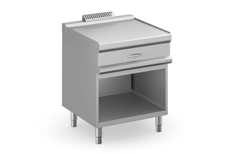Cet élément neutre sur armoire ouverte avec tiroir se distingue par ses dimensions optimales de 700x714x850mm pour un poids de 48.0kg. Conçu en inox, il assure une robustesse et une durabilité exceptionnelles, propices à un usage intensif. L'aménagement intelligent du tiroir offre une flexibilité maximale, facilitant le quotidien des cuisiniers.