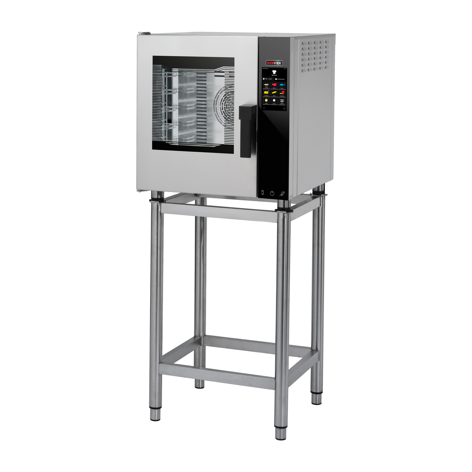 Dans beaucoup de cuisines pros, le vrai problème avec un four mixte compact, ce n’est pas la technologie, c’est la place disponible, la puissance électrique et la capacité de suivre la cadence au coup de feu. On se retrouve souvent avec un four trop volumineux pour le poste, ou trop gourmand pour l’abonnement électrique, ou encore sous-dimensionné en nombre de niveaux. Le modèle REDFOX MPDN 0523 EL, four mixte monophasé à injection 5x GN 2/3 porte ouvrante côté gauche, répond précisément à ces contraintes?: il tient dans un espace réduit avec ses dimensions 635x689x643 mm, reste exploitable en 230 V monophasé et propose une température maximale de 300 °C, suffisante pour la majorité des cartes en restauration traditionnelle, brasserie, snack évolué ou petite collectivité.