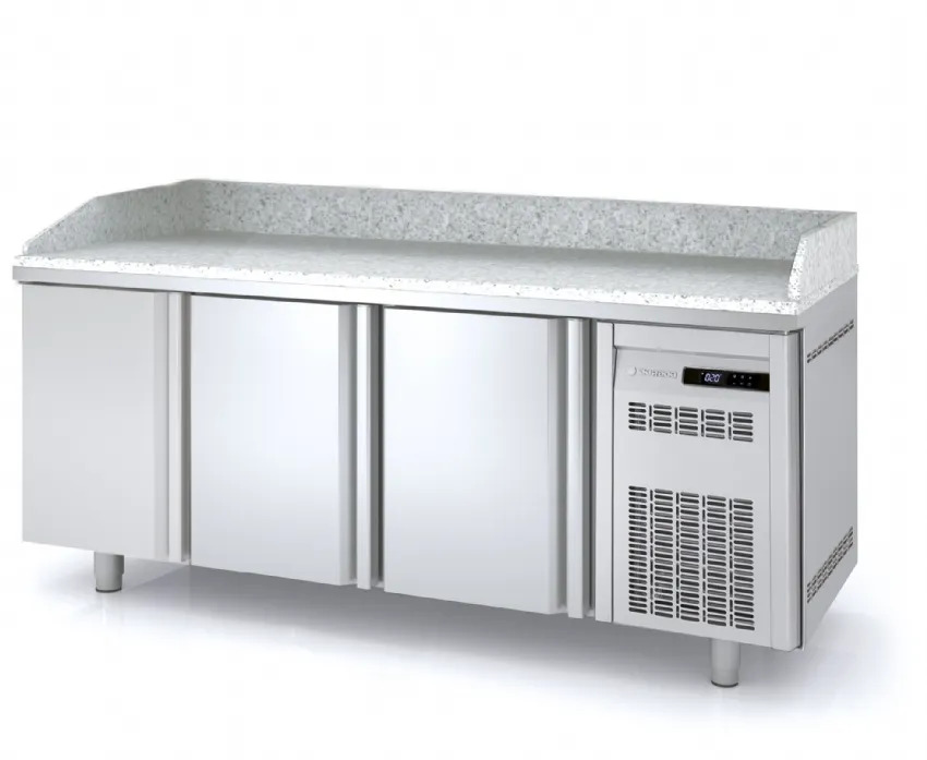 Table à pizza inox positive dessus granit avec 3 portes - 2020x600x850 mm