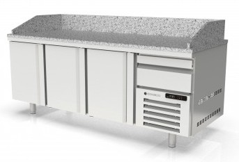 Table à pizza positive dessus granit avec 3 portes GN 1/1 - 1365x700x890 mm