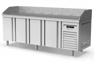 Table à pizza inox positive dessus granit avec 4 portes - 2245x700x850 mm