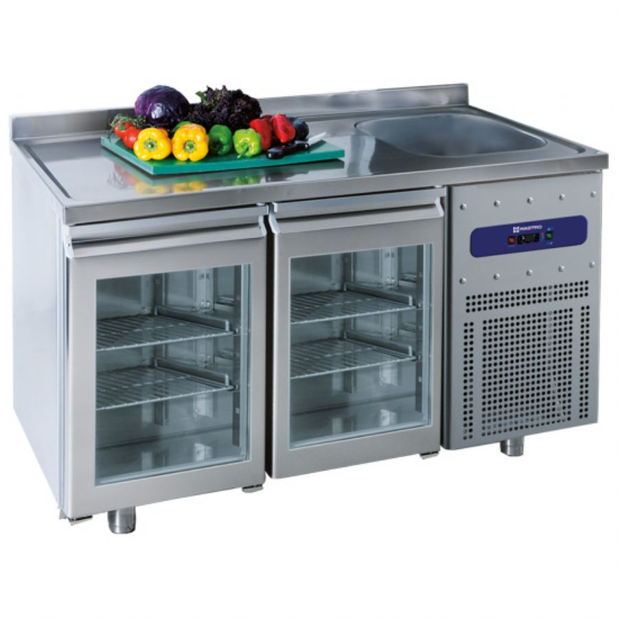 Table froide inox 2 portes vitrées avec dosseret température -2/+8°C
