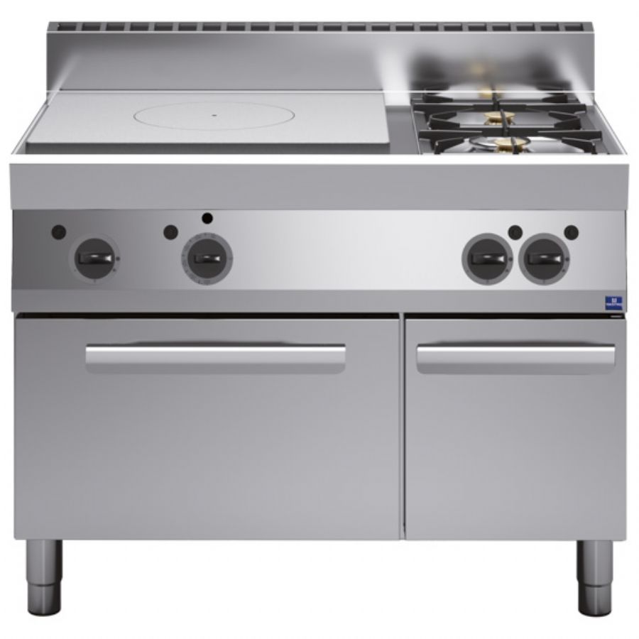 Fourneaux gaz 6 feux vifs avec four électrique avec placard ouvert - 1200x700x910 mm