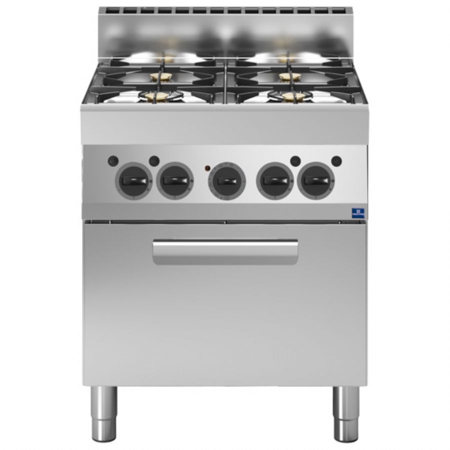 Fourneaux gaz 6 feux vifs avec four électrique avec placard ouvert - 1200x700x910 mm