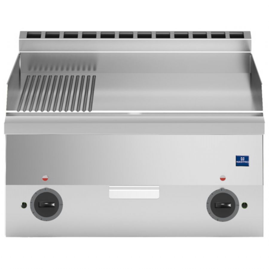 Plancha électrique de table surface chromée rainurée 1/3 et lisse 2/3 puissance 6 kW