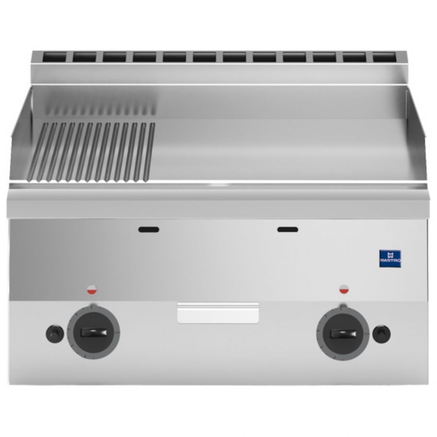 Plancha gaz de table surface chromée rainurée 1/3 et lisse 2/3 puissance 10,4 kW