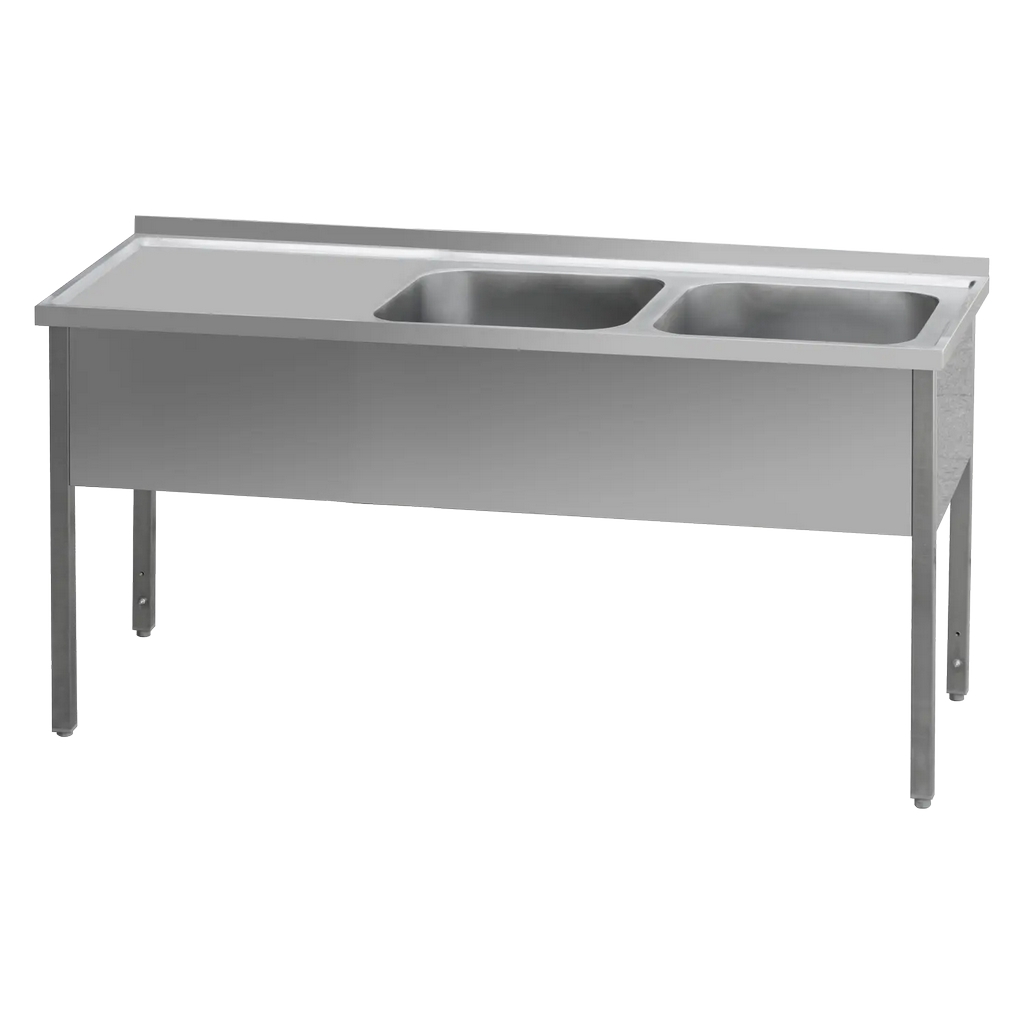 Table de lavage inox équipée de 2 cuves 40x50x30 avec zone d’égouttage à gauche 190x60x90
