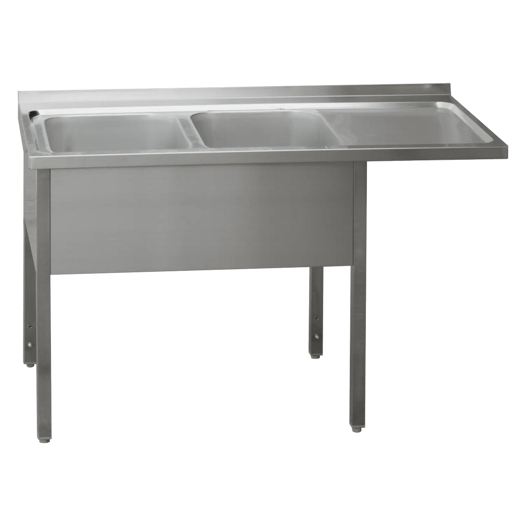 Table de lavage inoxydable à 2 cuves avec égouttage côté droit 210x70x90