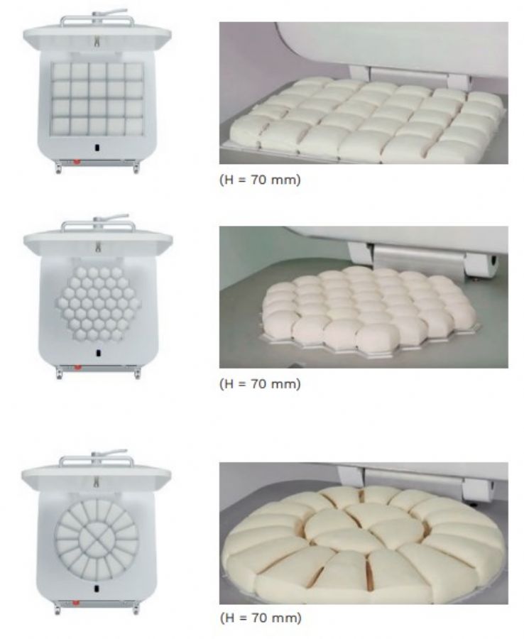 Dimensions (LxPxH) (mm) : 700x720x1100 Capacité (gr) : 90/350 Divisions : 19 Production (pièce/heure) : 1200 Capacité de pâte (kg) : 6 Poids (kg) : 150 Plusieurs formes disponible à la commande