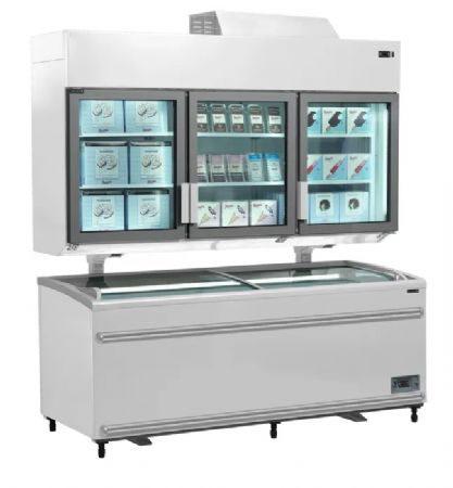 Froid ventilé tangentiel, Parfait pour optimiser la surface commerciale, Congélateur / Réfrigérateur, Facile de passer du refroidisseur au congélateur, Idéal avec un réfrigérateur / congélateur coffre en-dessous, Portes vitrées chauffantes à fermeture automatique, Dégivrage automatique, Pieds ajustables
