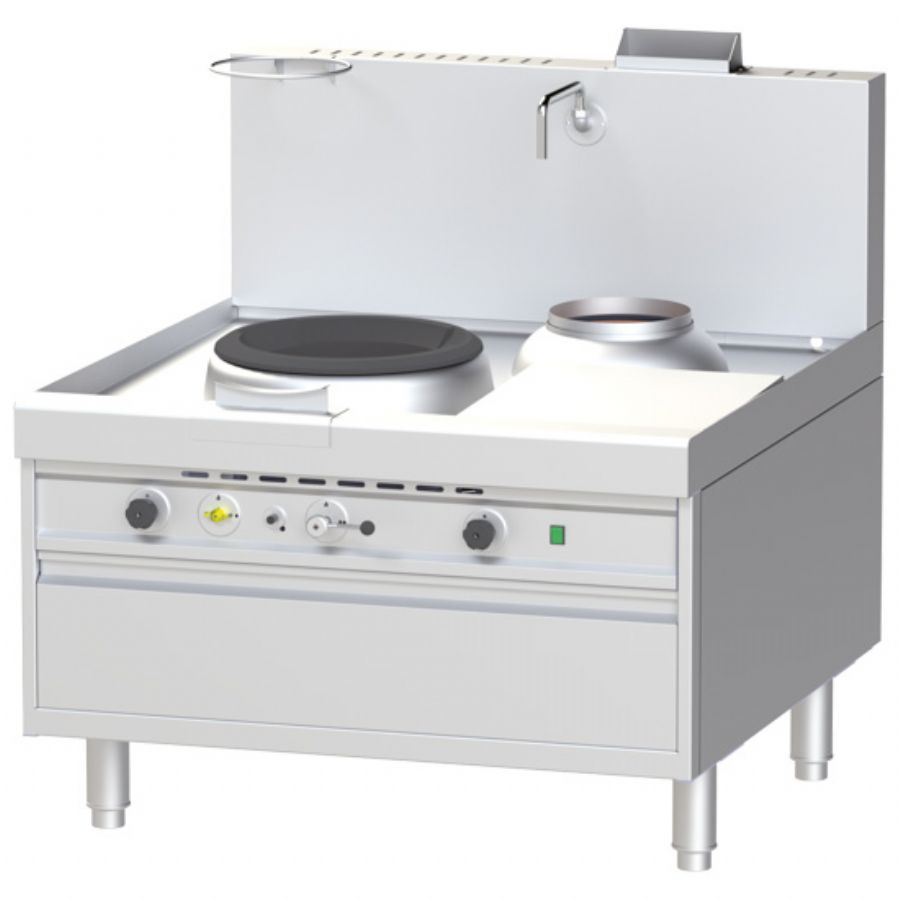 Poste de cuisson wok gaz haute performance avec 1 brûleur + 1 brûleur soupe puissance 40 kW