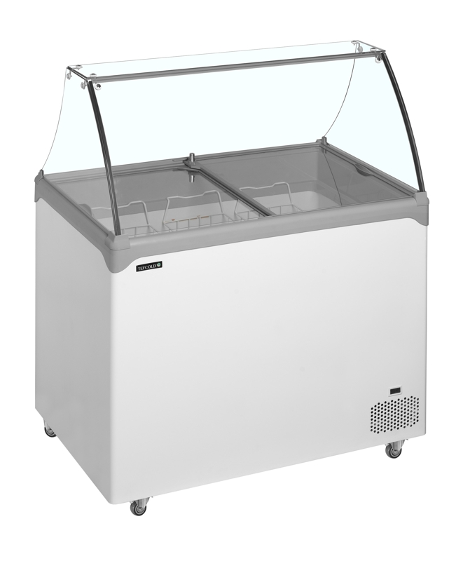 Vitrine à froid statique pour glace en bac - température -24 à -14°CLa gamme de congélateurs vitrés NIC-SC-SO allie design élégant et prix abordable. Elle se distingue par des coins incurvés, des bords arrondis, des couvercles en verre coulissants plats et un comptoir en verre incurvé. L’éclairage LED interne à l’avant met les glaces parfaitement en valeur, tandis que les roulettes assurent une grande mobilité. Le congélateur est livré avec des paniers standard des paniers optionnels pour bacs à glace en plastique de 5 litres sont disponibles via la rubrique « Accessoires ». Ils ne sont pas compatibles avec les bacs Napoli.