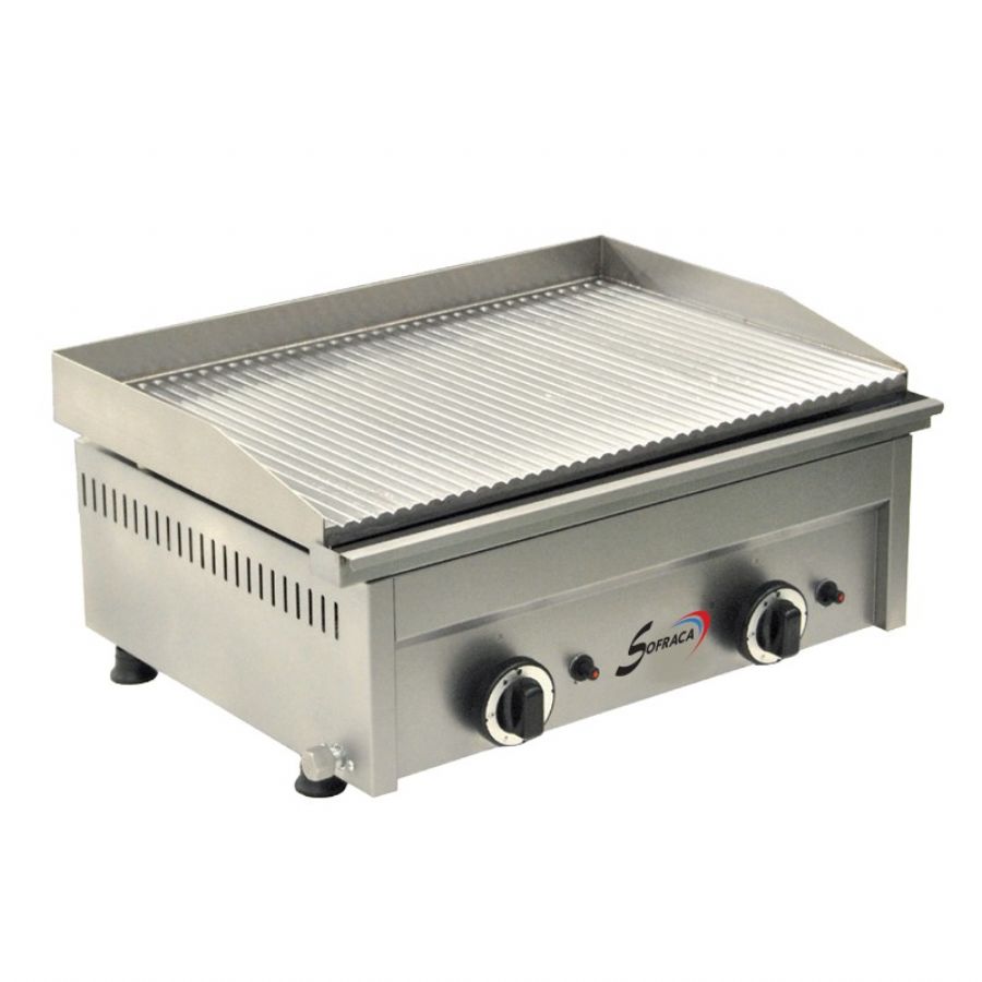 Plancha électrique triphasé professionnel à poser plaque 1/2 lisse et 1/2 rainuré - 660x580x310 mm