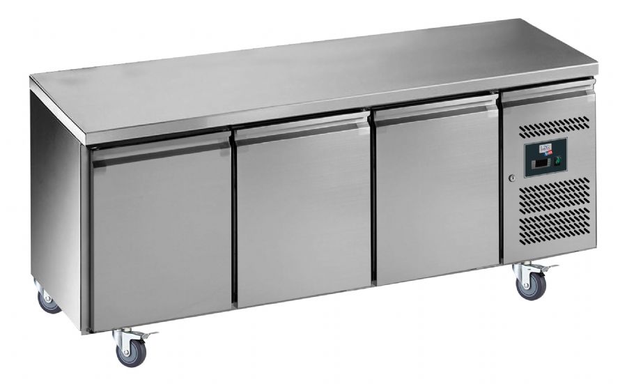 Table réfrigérée inox positive avec évaporateur ventilé - 3 portes - 339 litres - Avec dosseret - SN3201X