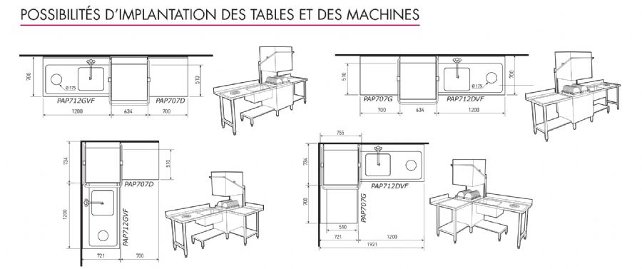 La table lisse PAP707G présente des dimensions de 700x715x850 mm (LxPxH), offrant une largeur utile de 700.0 mm, une profondeur de 715 mm et une hauteur de 850 mm pour un travail à la bonne ergonomie. Elle est prévue pour les paniers 500 x 500 et 600 x 500 (en ligne uniquement pour ces derniers) et s’accroche directement à la machine côté gauche pour garantir un alignement parfait et une étanchéité de surface avec le capot.