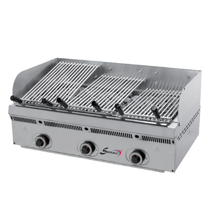 Découvrez le Grill pierre de lave gaz spécial steak inclinable 3 zones de chauffe - 1 grille 820x475, un produit de la célèbre marque SOFRACA, alliant performance et innovation pour répondre aux besoins exigeants des professionnels de la restauration. Grill professionnel par excellence, il est idéal pour la cuisson de steaks dans les cuisines professionnelles.