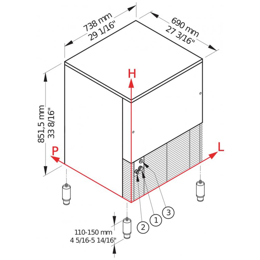 | Dimensions (LxPxH) (mm) | 738x690x851.5+110/150 |