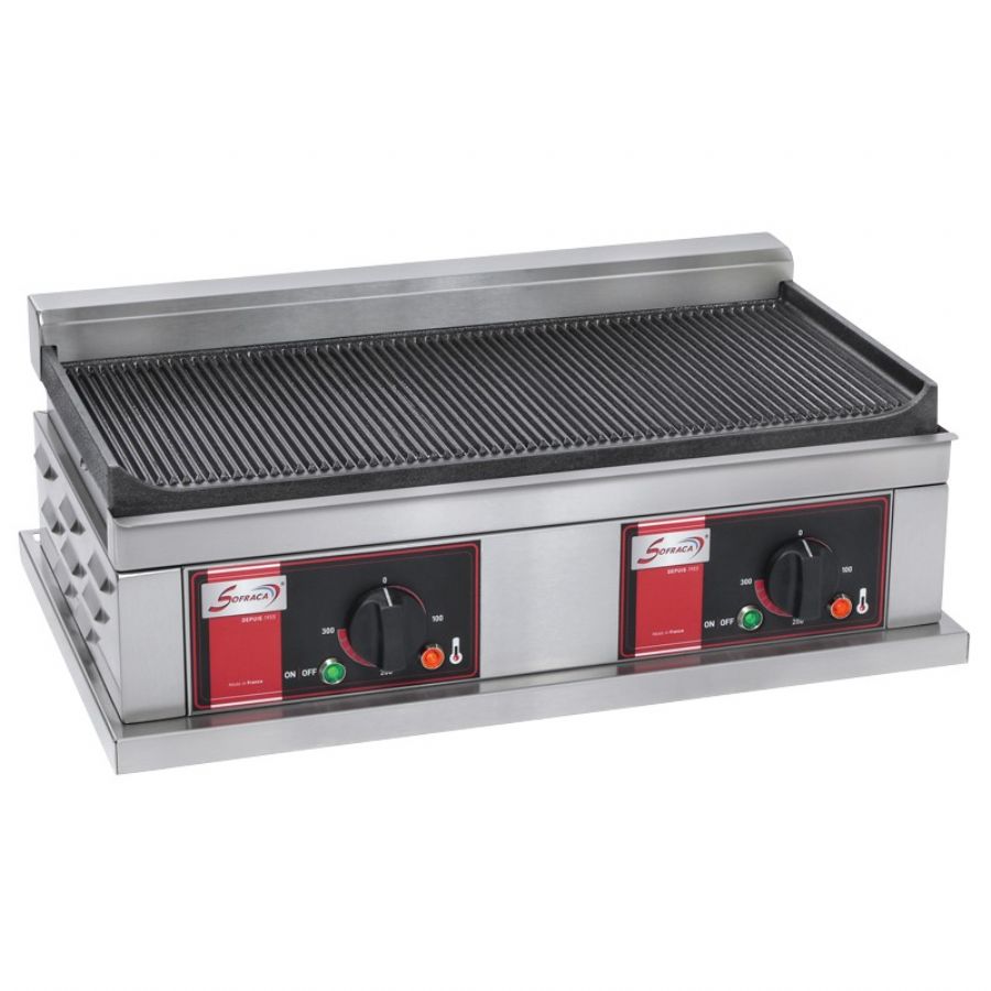 Plancha électrique triphasé professionnel à poser plaque 1/2 lisse et 1/2 rainuré - 660x580x310 mm