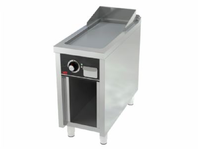 Plancha professionnelle électrique surface lisse sur armoire ouverte - 400x900x900mm